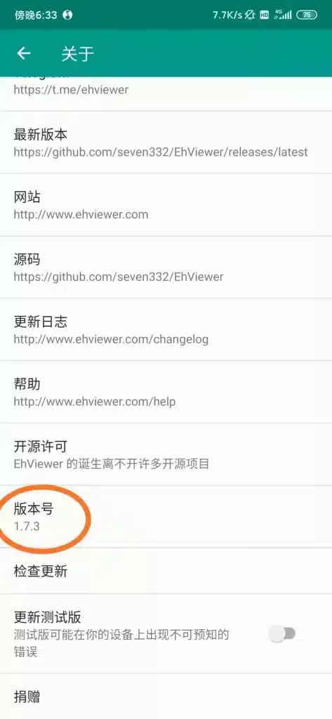 安装后手机端可以看到版本号是1.7.3, Ehviewer 必须是最新版本才能用。