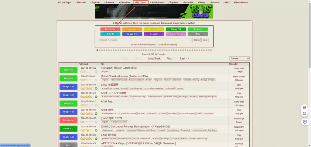 首先打开E站表站网址:https://e-hentai.org/,点击【My Home】:
