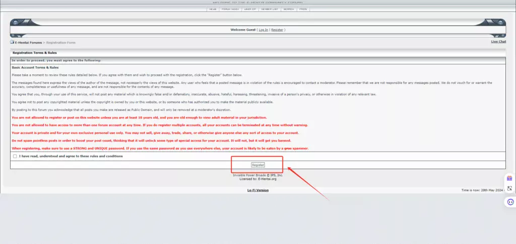 此时,网站会让你确认网站账号注册规矩和注意事项,点击【Register】: