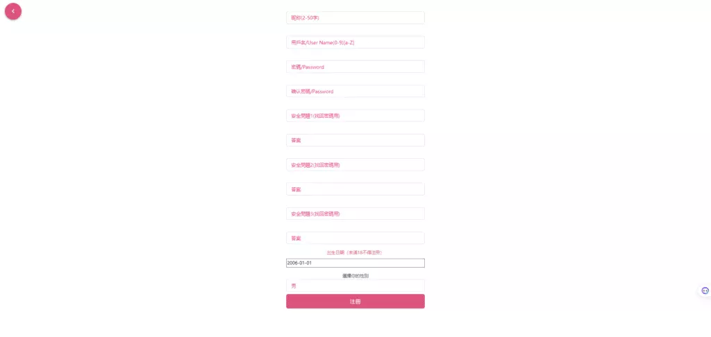 在弹出的新页面内,你需要填写昵称、用户名、设置密码、二次输入确认密码、设置三个问答以便找回密码、选择出生日期以及性别,并点击注册。其中出生日期务必要超过18岁,否则无法进行注册。