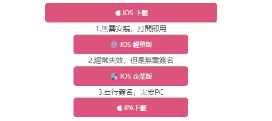 再次点击【iOS 下载】,会出现三个不同的版本下载渠道,包括轻量版、企业版、以及 iPad 版: